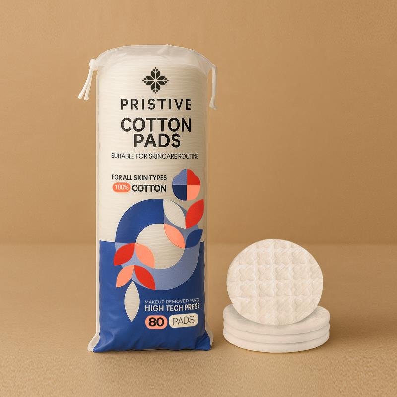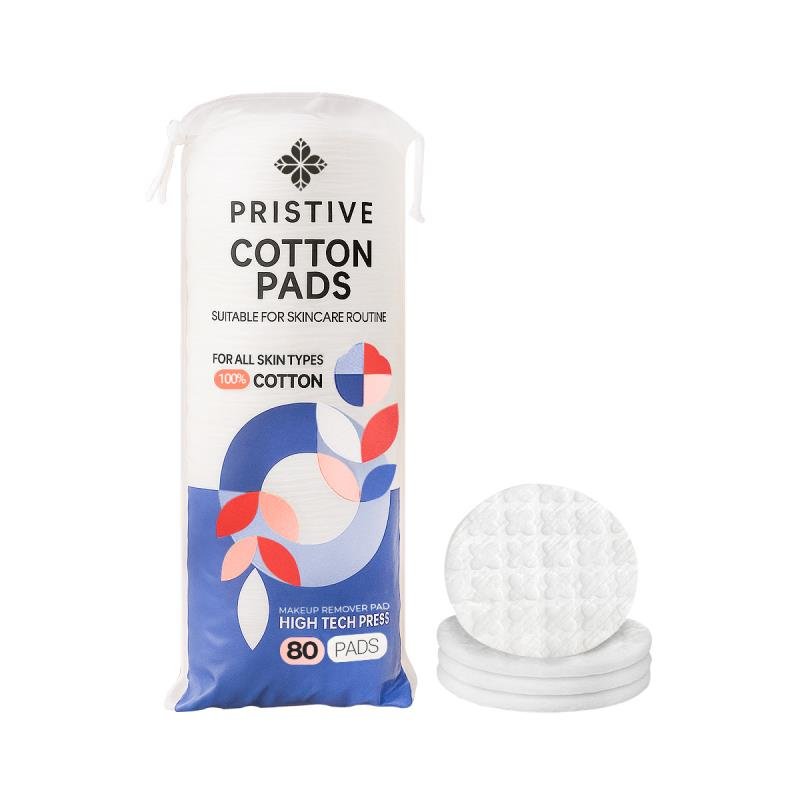 The PRISTIVE makeup remover pads (pack of 80 pieces) are a highly practical product designed for use with toner, micellar water, makeup removers, and cleansing milk. Made from 100% natural cotton, these pads are well-compressed and do not dissolve in water. With high quality and excellent absorbency, they are free from any chemicals, making them an effective and gentle choice for daily use in your skincare routine.